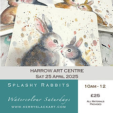Learn to paint splashy watercolour rabbits in a loose style Expect friendly guidance, plenty of demonstrations, and lots of time to experiment. Whether you’re picking up a brush for the first time or brushing up on your technique, you’ll leave feeling inspired (and a little bit in love with watercolour!). No drawing skills required Location: Harrow Art Centre 10am - 12 Cost: £25 What to Bring: I supply all painting materials, you just need to bring your enthusiasm and a willingness to experiment. ................................ Cancellation Policy: https://www.kerryslackart.com/cancellation-policy How to find us: https://www.kerryslackart.com/how-to-find-us